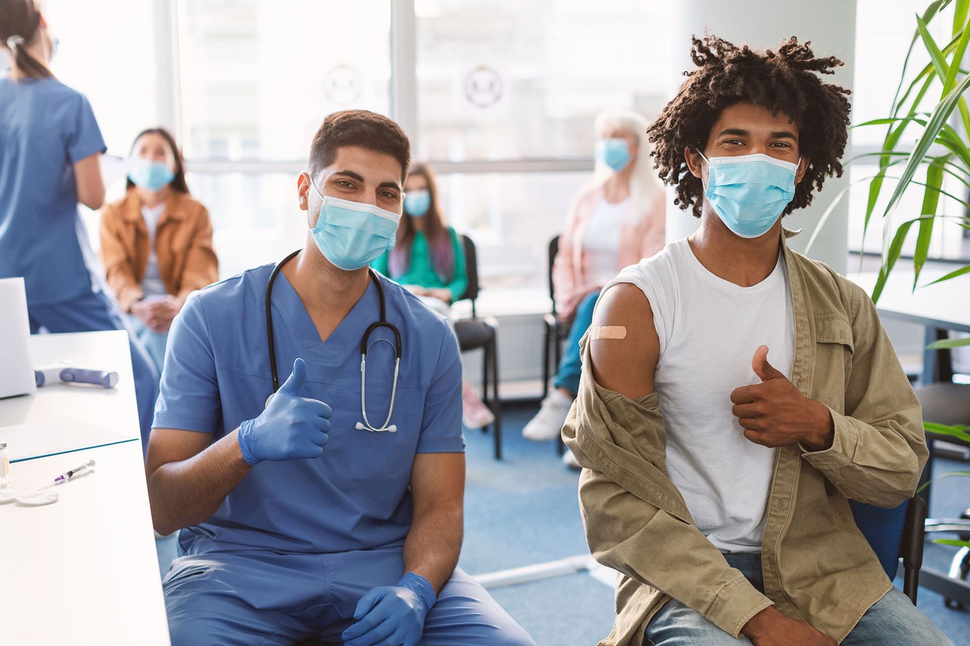 Chiropractor/Nurse Practitioner provides vaccine to patient at clinic.